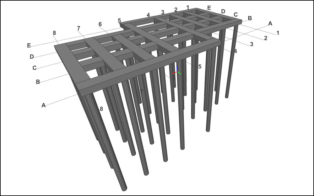 The building is a reinforced concrete building without shear walls with moment resisting frames – capacity design – founded on piles and cross beams.