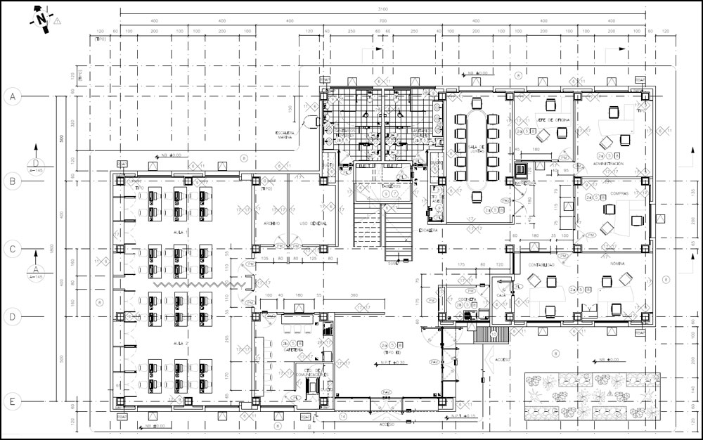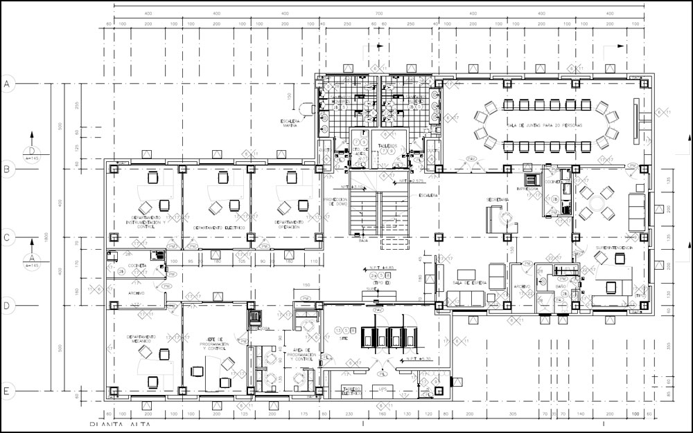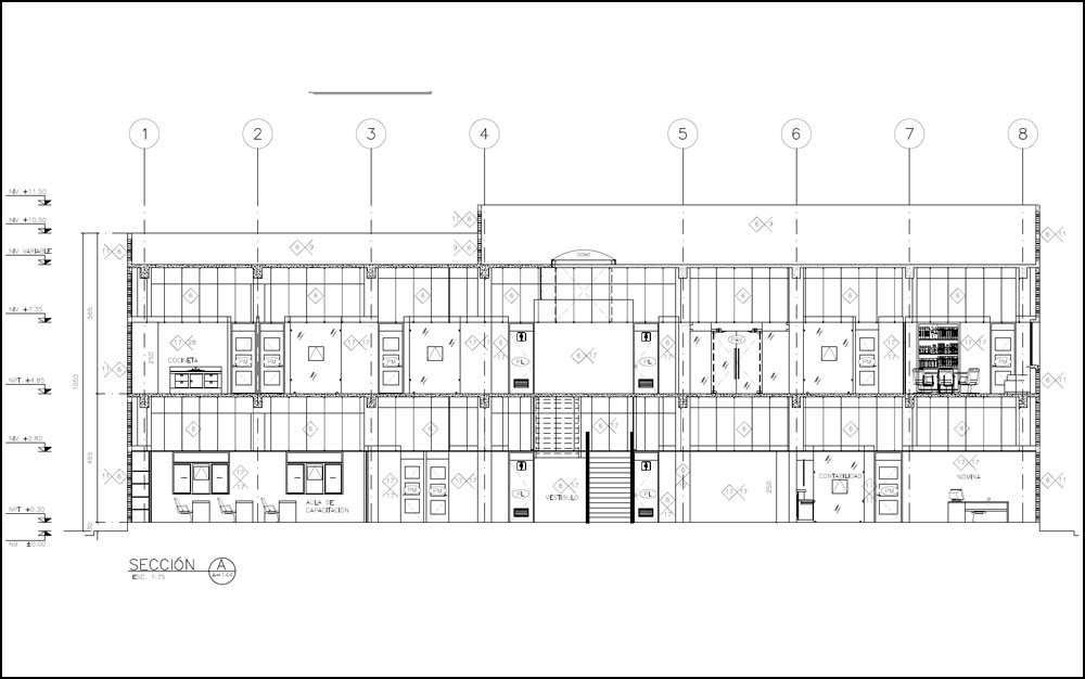 This two-storey administration office building in a Combined Circle Plant in northern Mexico, Baja California is located in a highly earthquake prone region. For this reason, a two thousand (2000) year period of return seismic spectrum was used.