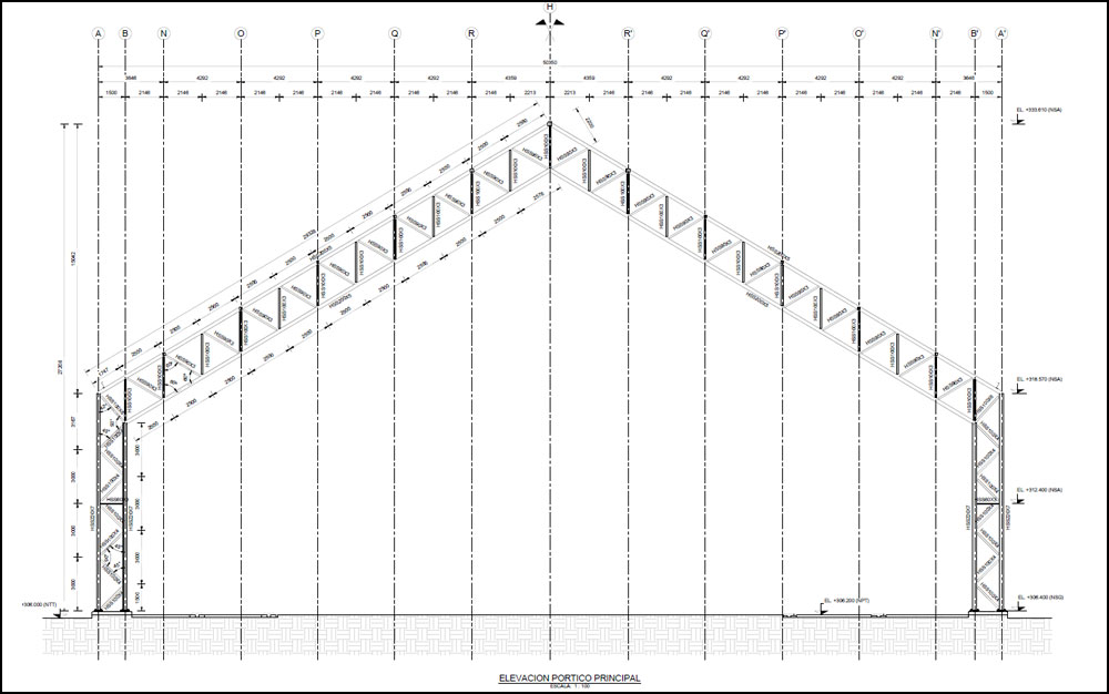 The key here was optimization of the structural system to deliver a cost effective structural design. The warren truss rafters and truss columns at 8m centers bridged a span of 50m with a low steel mass to square meter value.
