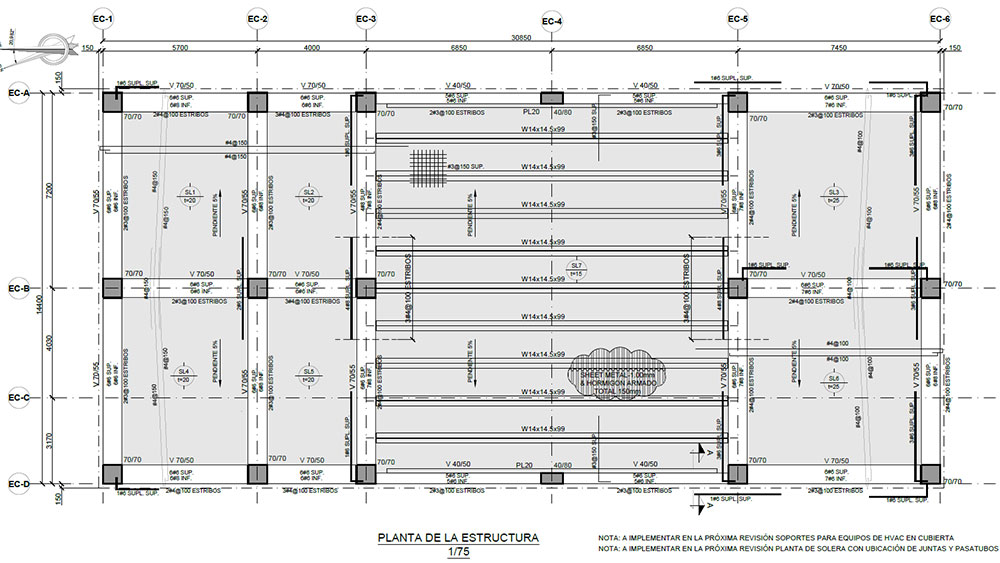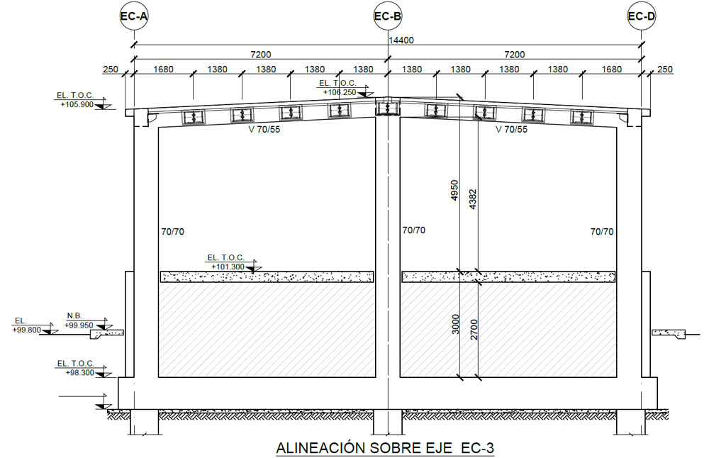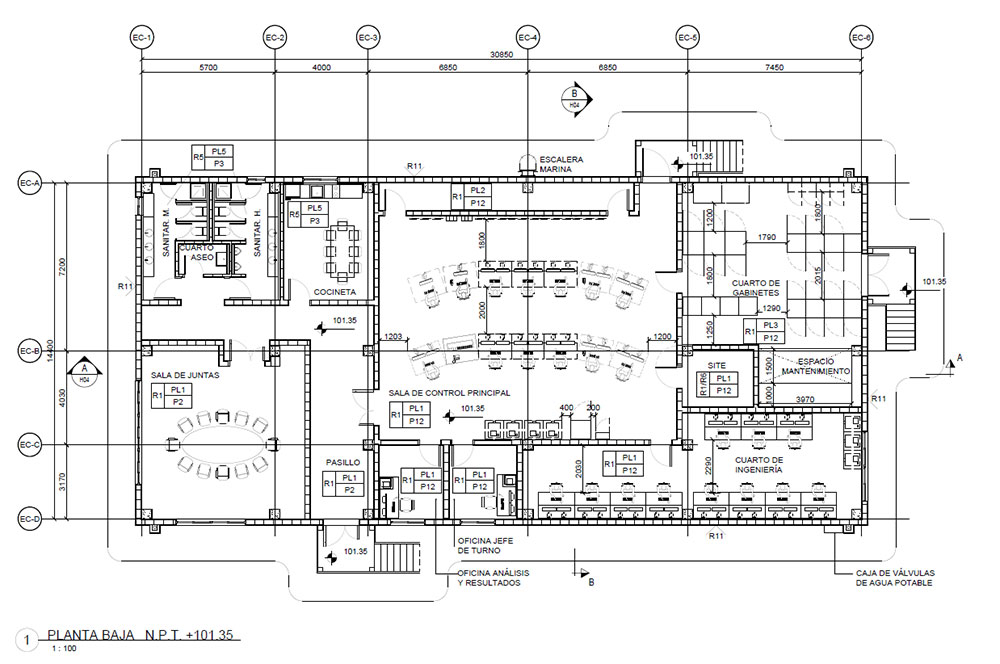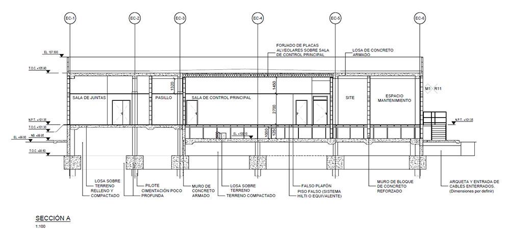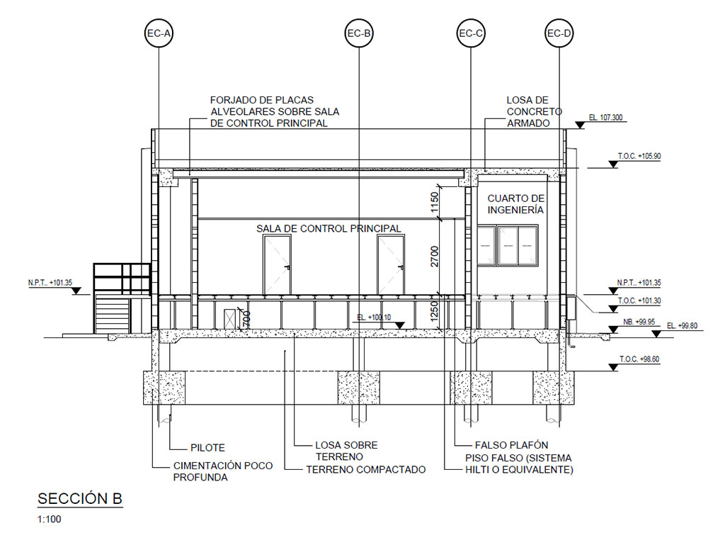 This single-storey control room office building in a Combined Circle Plant in northern Mexico, Baja California is located in a highly earthquake prone region. For this reason, a two thousand (2000) year period of return seismic spectrum was used.